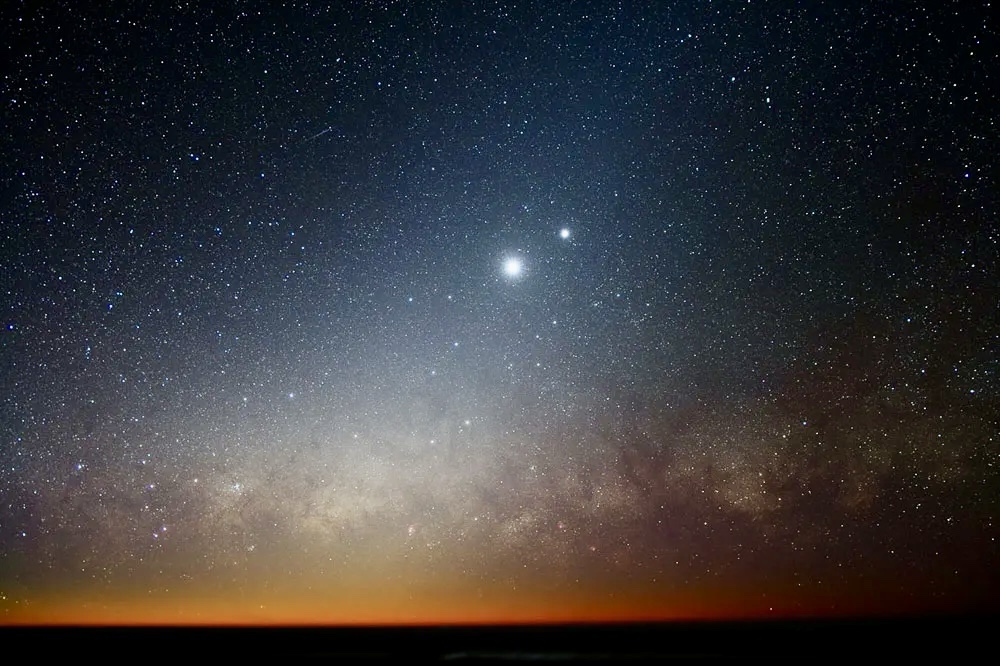 Siempre pienso en los antiguos que veían semejante escenario y aprendían desde muy temprano a usarlo como texto de orientación y construcción de leyendas. Por ello me sorprendió sobremanera la primera vez que lo vi aquí, rodeado de miembros del vecindario, donde ninguna observación ni comentario parecían complementar el alucinante despliegue de la Vía Láctea. He tenido que ser yo, con mis universidades y libros urbanos, el que venga a explicarles, rodeado de embobados rostros tanto adultos como niños, como diferenciar entre un planeta y una estrella, la composición de la constelación de Orión y su interesante Betelgeuse, el cual está a punto de reventar en supernova, o sea, en cualquier instante entre ahora y 10,000 años más, no sin aprovechar para hablar de las distancias y de la trayectoria de la luz, la cual hace todo lo que vemos un asunto del pasado. Fue de las primeras señales que evidenciaban para mí, la total ruptura que había impuesto la modernidad en el conocimiento y espíritu de las poblaciones que aun vivían atadas a la tierra. Un robo de proporciones mayores que, por supuesto, pretendía condenar a los usurpados a la perenne pobreza. Pero esto por suerte no es una apuesta segura, pues la otra noche me llama entusiasmado el vecino para que saliera a unirme a el y a sus hijos, admirándose por lo brillante que se veían hoy la Luna junto a Venus.